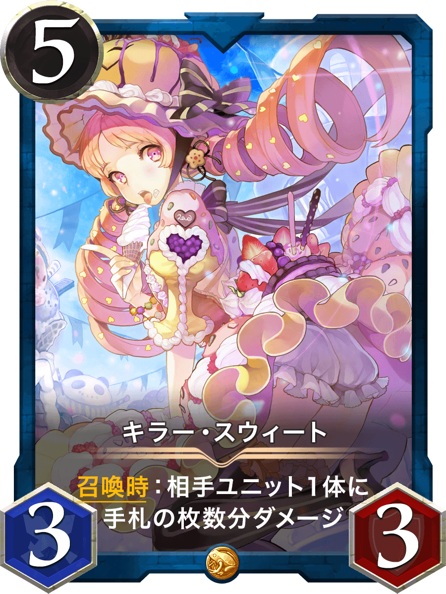 召喚時:相手ユニット1体に手札の枚数分ダメージ