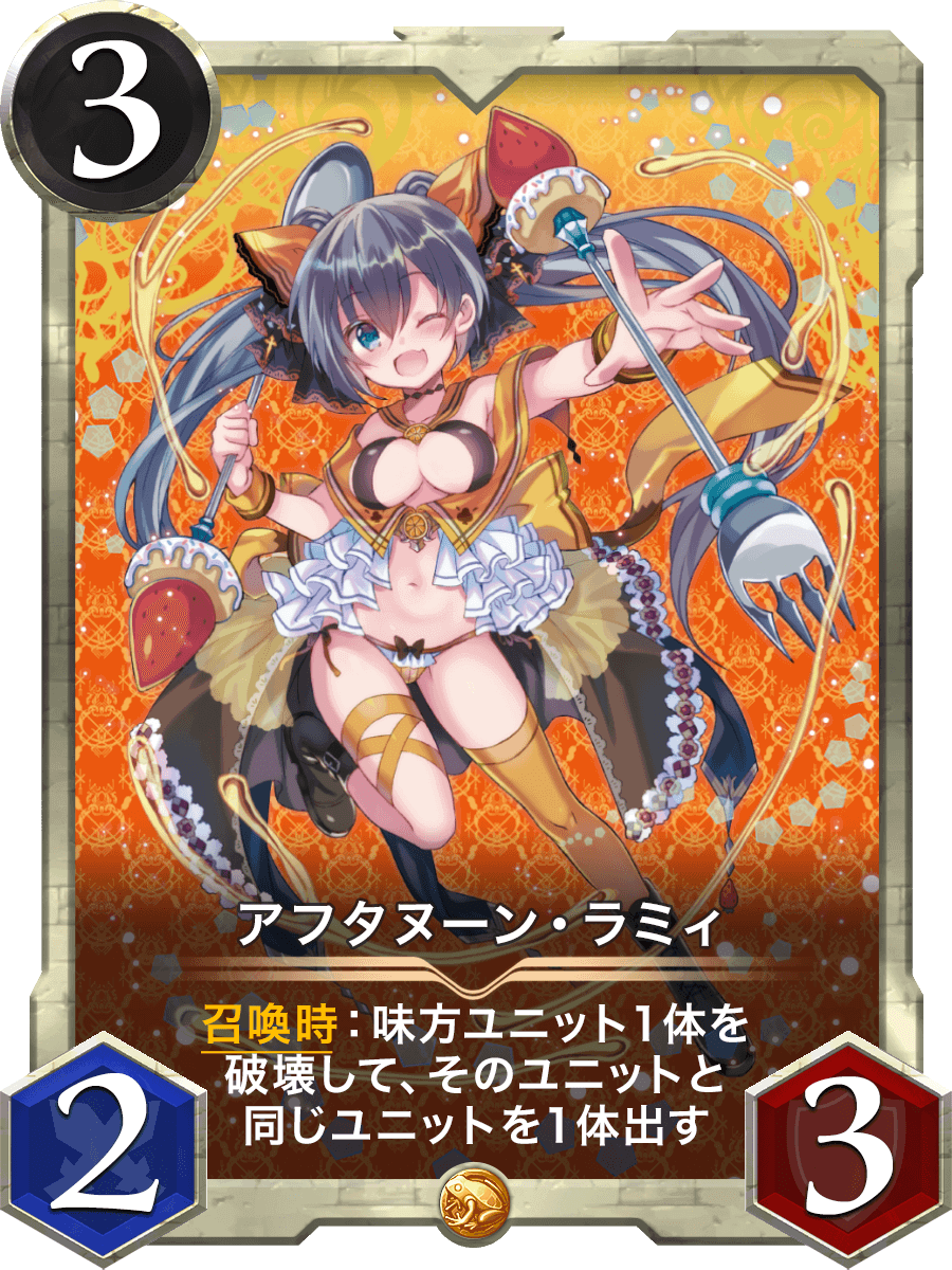 召喚時:味方ユニット1体を破壊して、そのユニットと同じユニットを1体出す