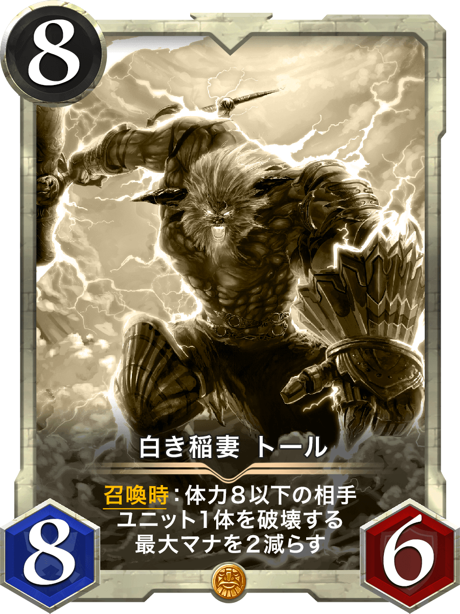 召喚時:体力8以下の相手ユニット1体を破壊する 最大マナを2減らす