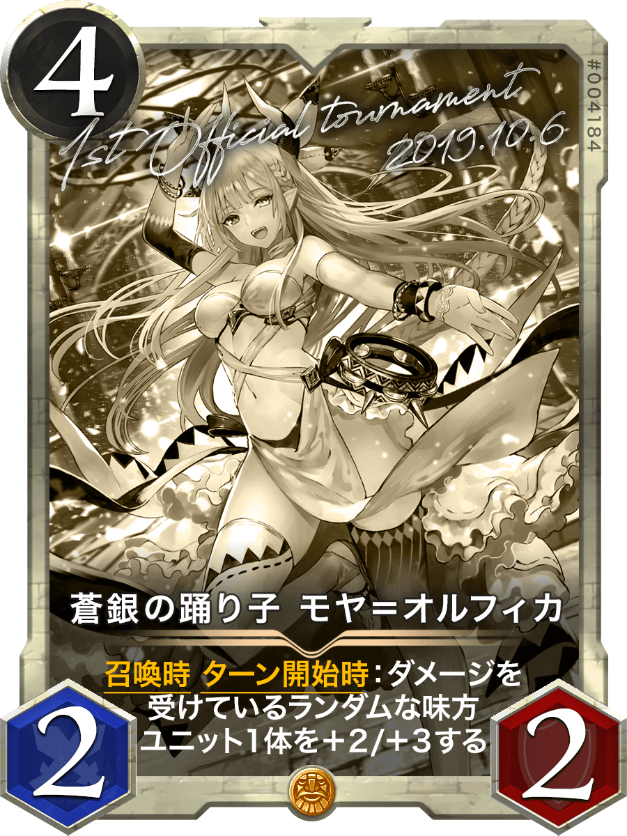 召喚時 ターン開始時:ダメージを受けているランダムな味方ユニット1体を+2/+3する