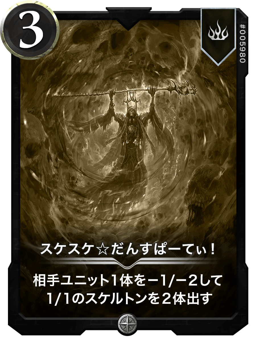 相手ユニット1体を−1/−2して1/1のスケルトンを2体出す