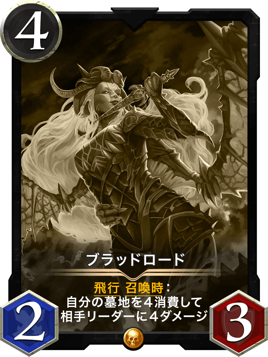 飛行 召喚時:自分の墓地を4消費して相手リーダーに4ダメージ