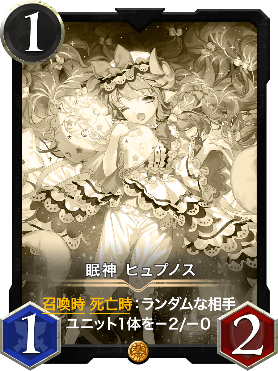 召喚時 死亡時:ランダムな相手ユニット1体をー2/ー0