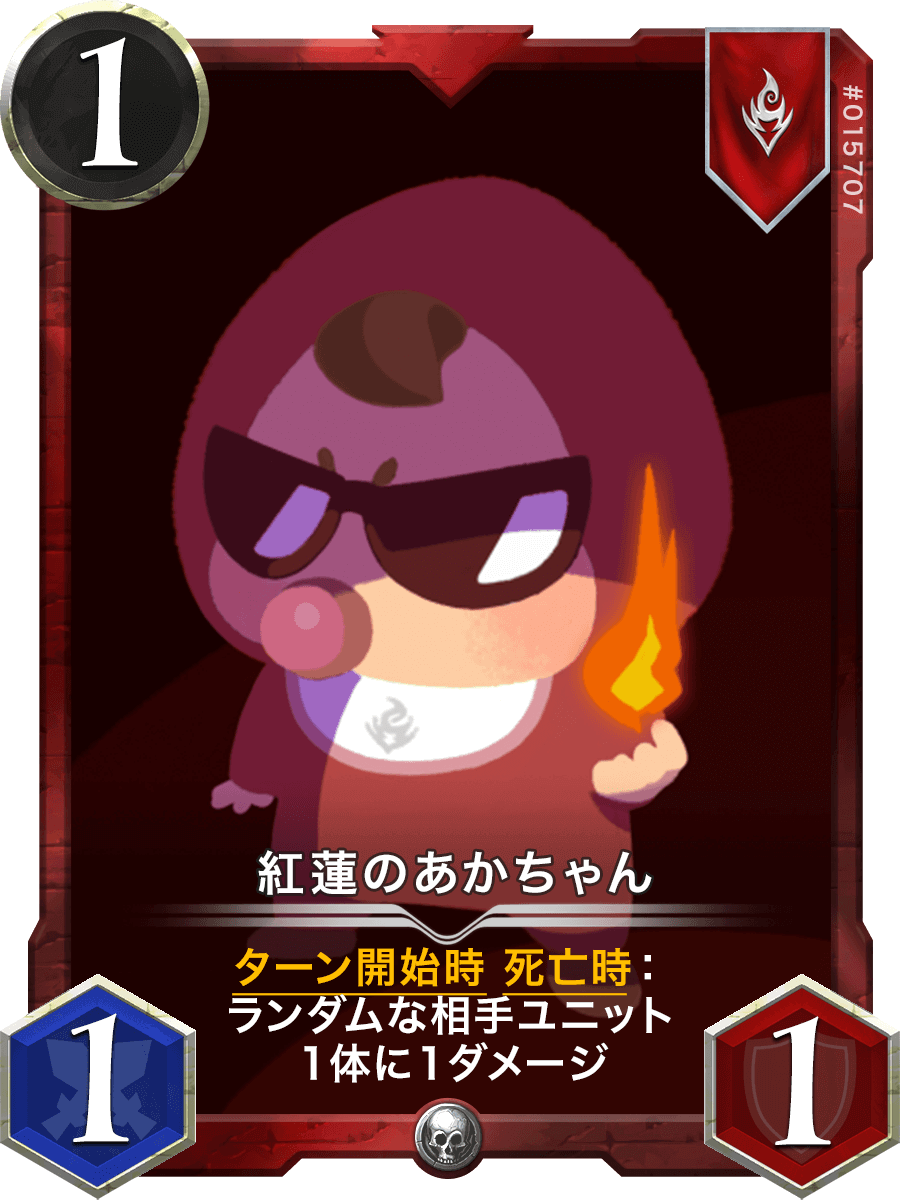 ターン開始時 死亡時:ランダムな相手ユニット1体に1ダメージ