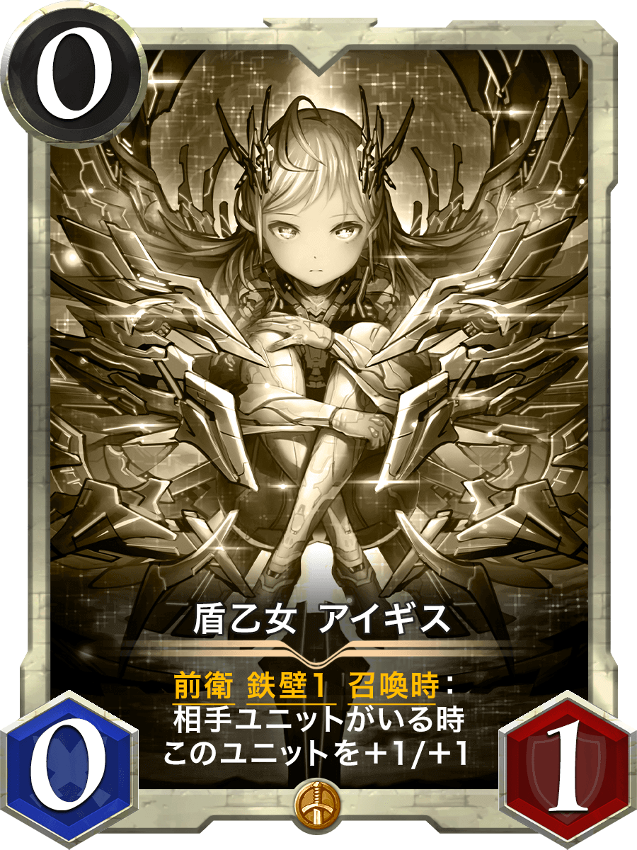 前衛 鉄壁1 召喚時:相手ユニットがいる時このユニットを+1/+1