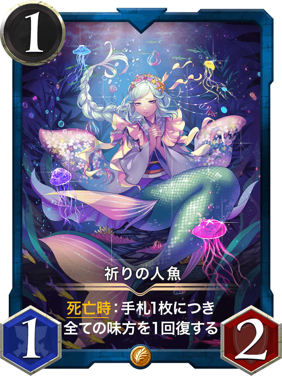 死亡時:手札1枚につき全ての味方を1回復する