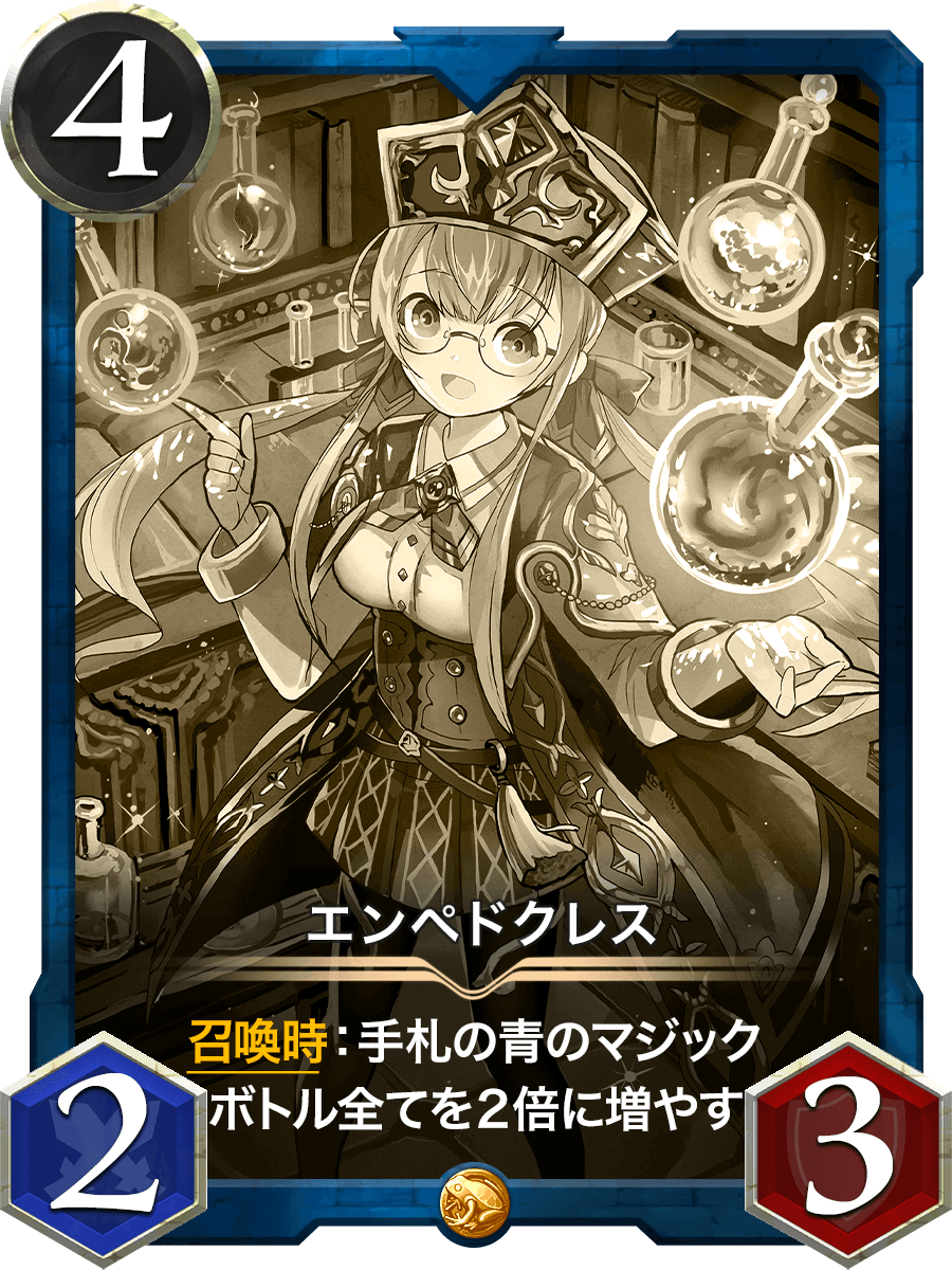 召喚時:手札の青のマジックボトル全てを2倍に増やす