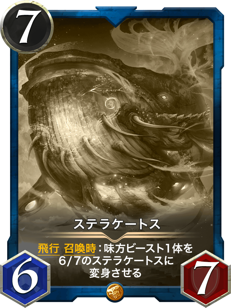 飛行 召喚時:味方ビースト1体を6/7のステラケートスに変身させる