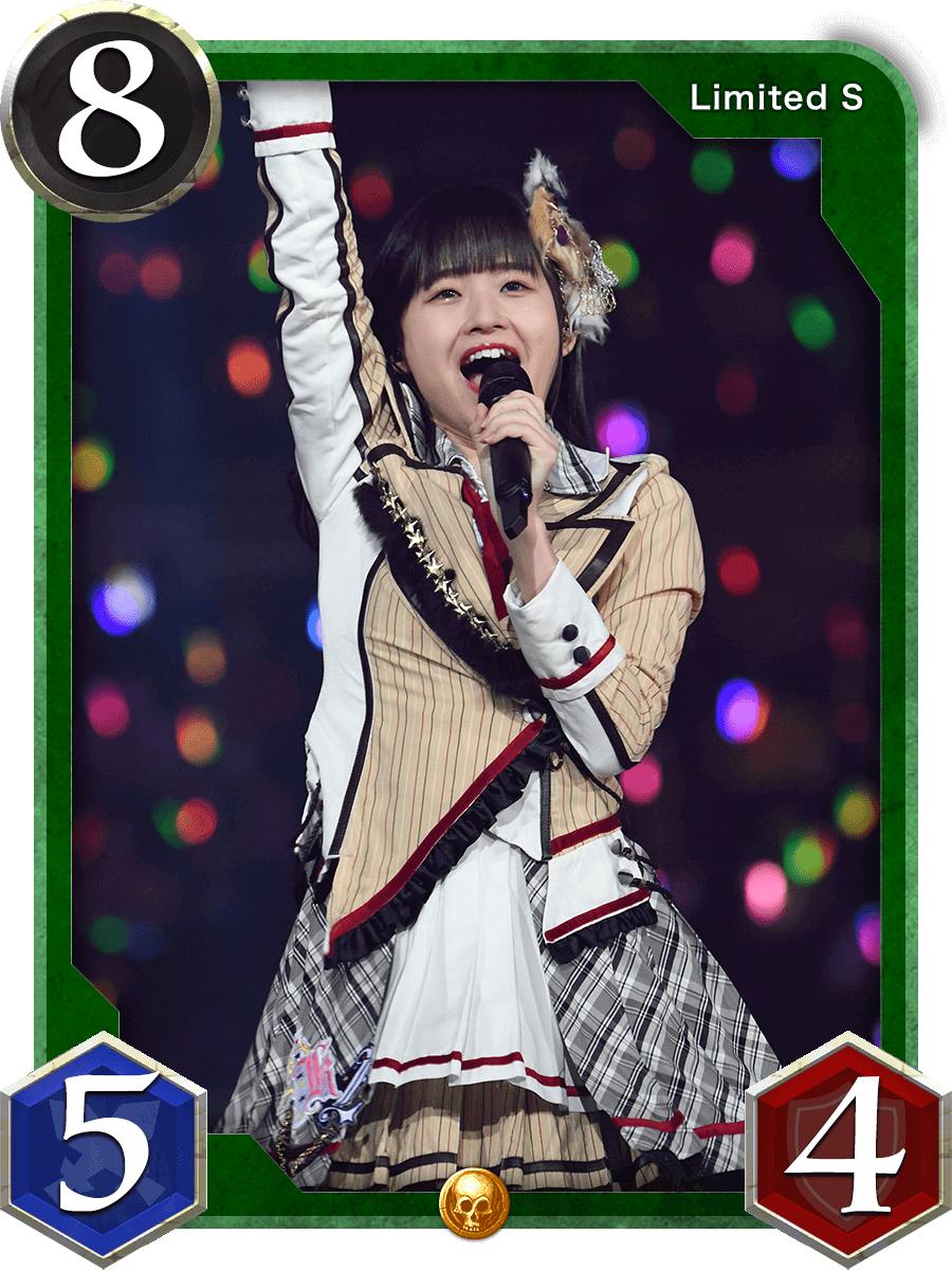 召喚時:ランダムな味方のSKEカード1体を+5/+5